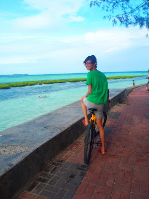 Wah, serunya snorkeling, banana boat, sepedahan keliling pulau, dan bertemu temen-temen baru yang pada down to earth banget. Dan masyarakat disanapun juga ramah-ramah banget, pulau pramuka ini dulunya hanya pulau kosong dan ditempati oleh para pelaut dari Sulawesi. Yup kebanyakan menggunakan bahasa bugis dan rumah panggung disana juga pengaruh corak budaya sulawesi. Karna kita nginep dan diakomodasiin oleh Bupati atau Camat dari Pulau Seribu gitu, lupa gw Zzz, jadi sedikit banyak tau mengenai pulau ini deh.
